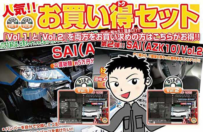 SAI AZK10 メンテナンスDVD 内装&外装のドレスアップ改造 Vol.1&2【通常版】〔メール便送料無料〕工賃節約 車パーツ脱着 パーツ交換 解説DVD 外し方、バラし方